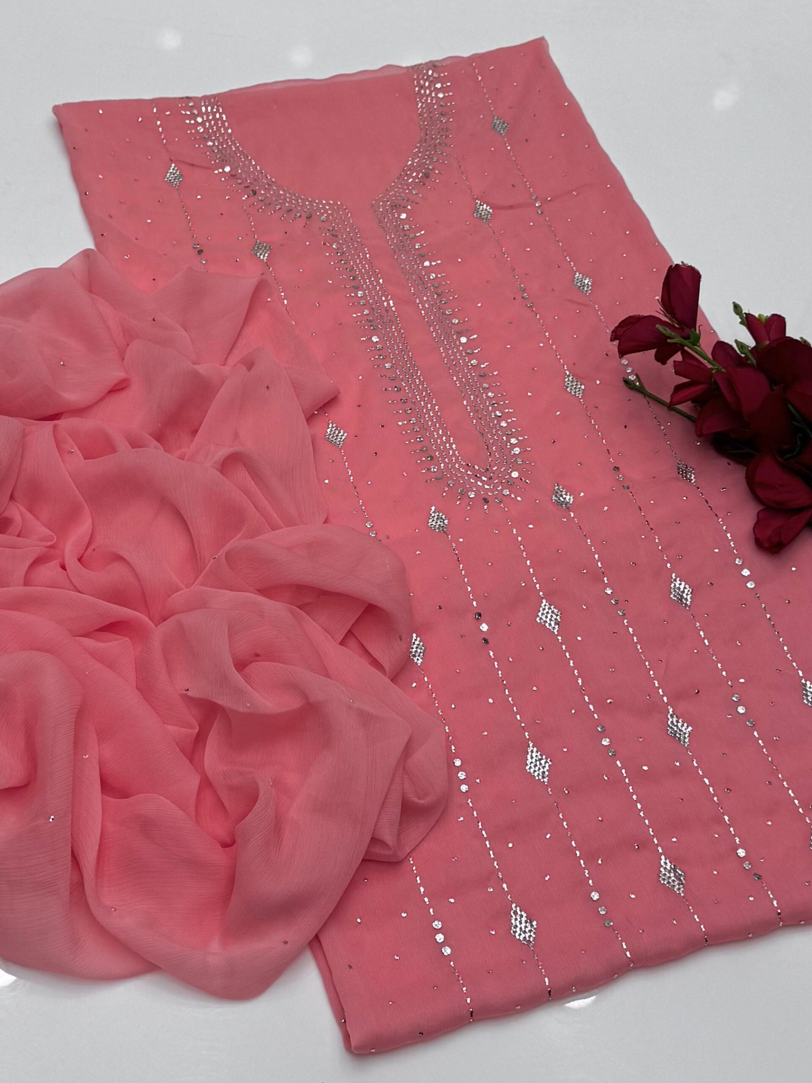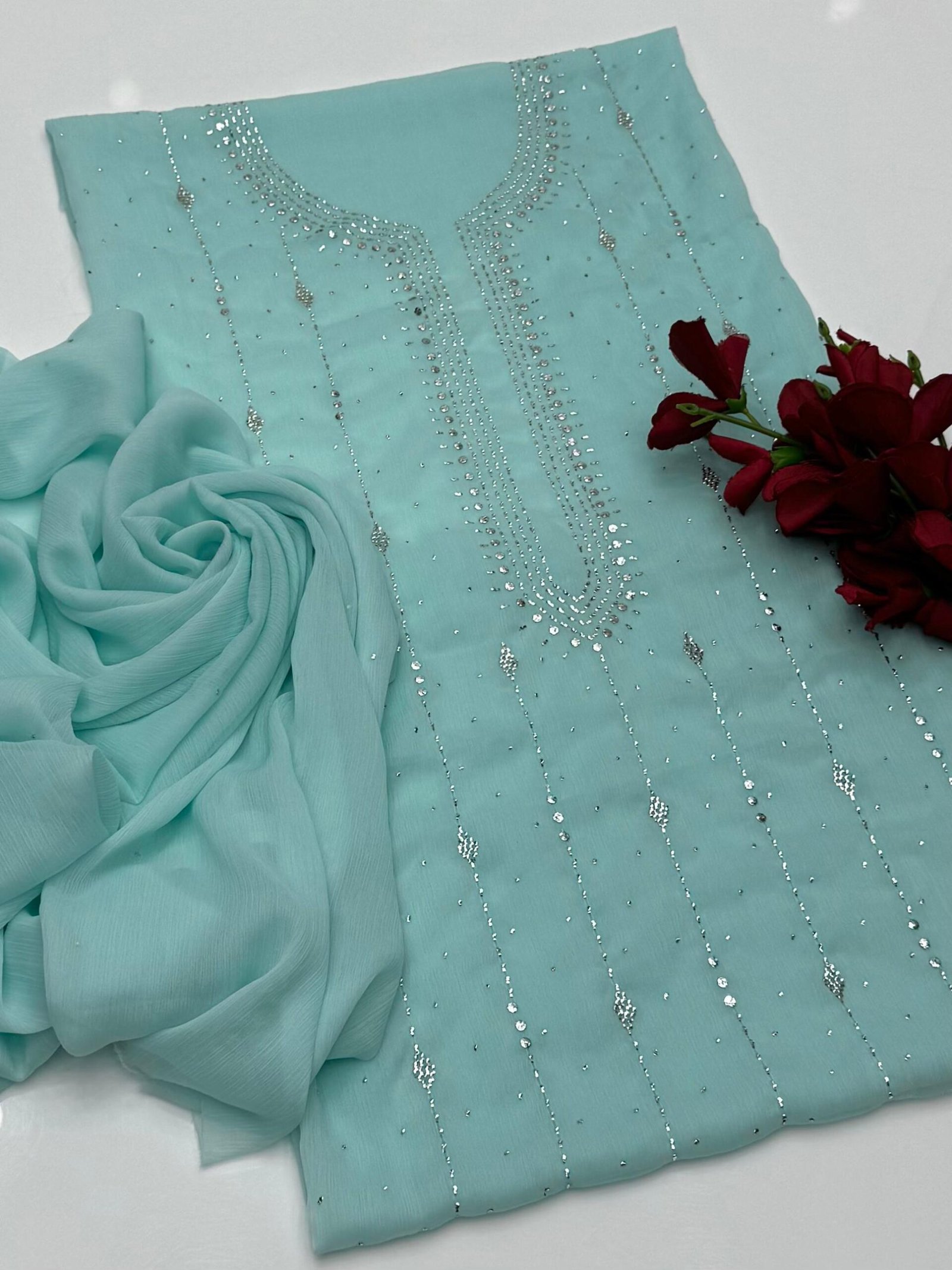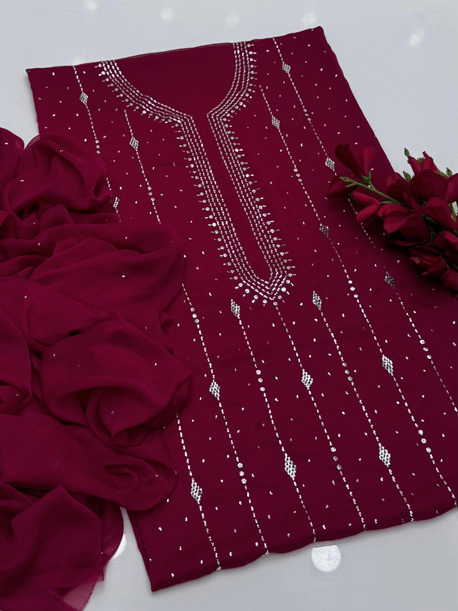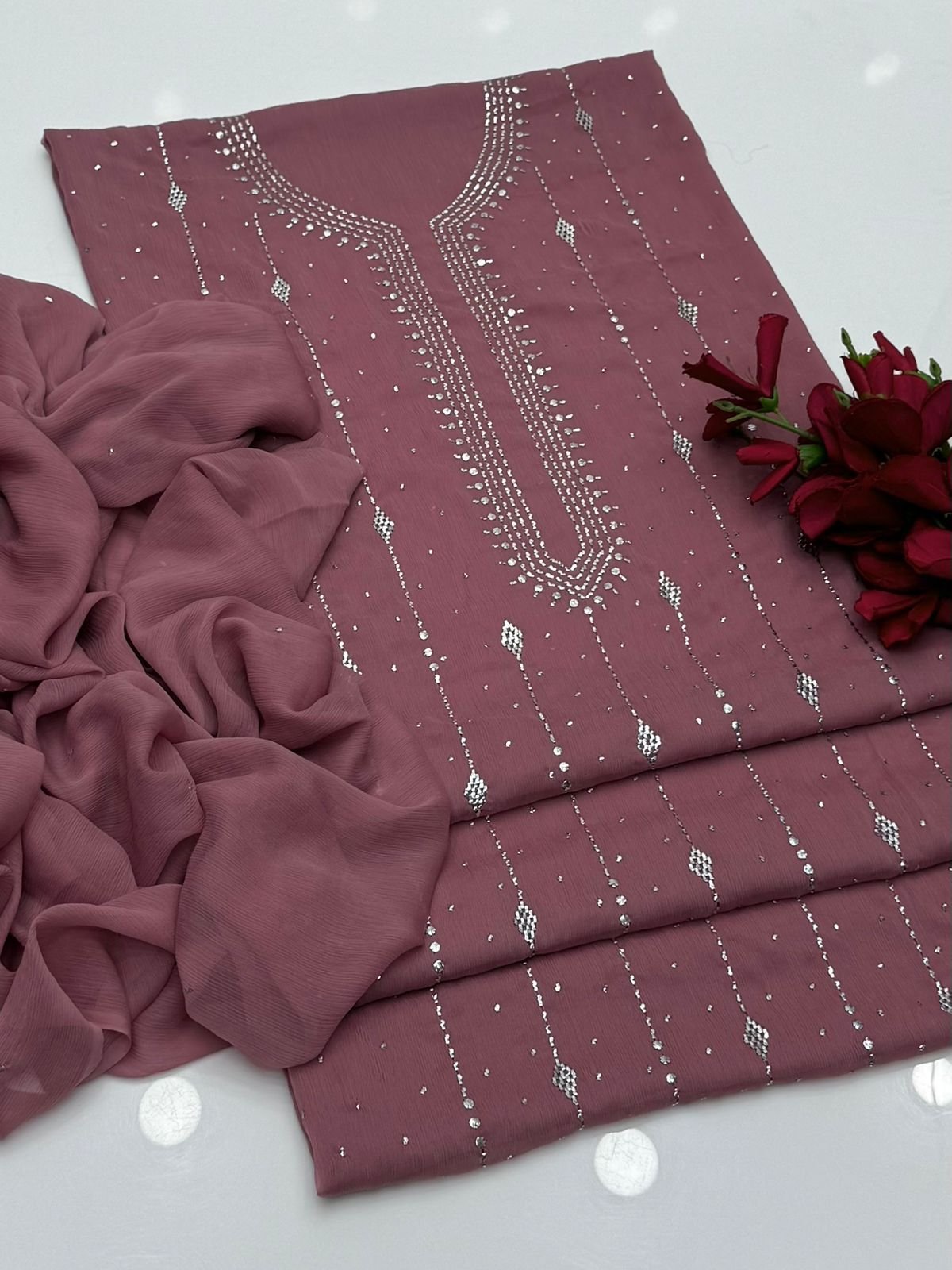 Bamber Chiffon Mukaish Work 2PC Shirt & Dupatta
