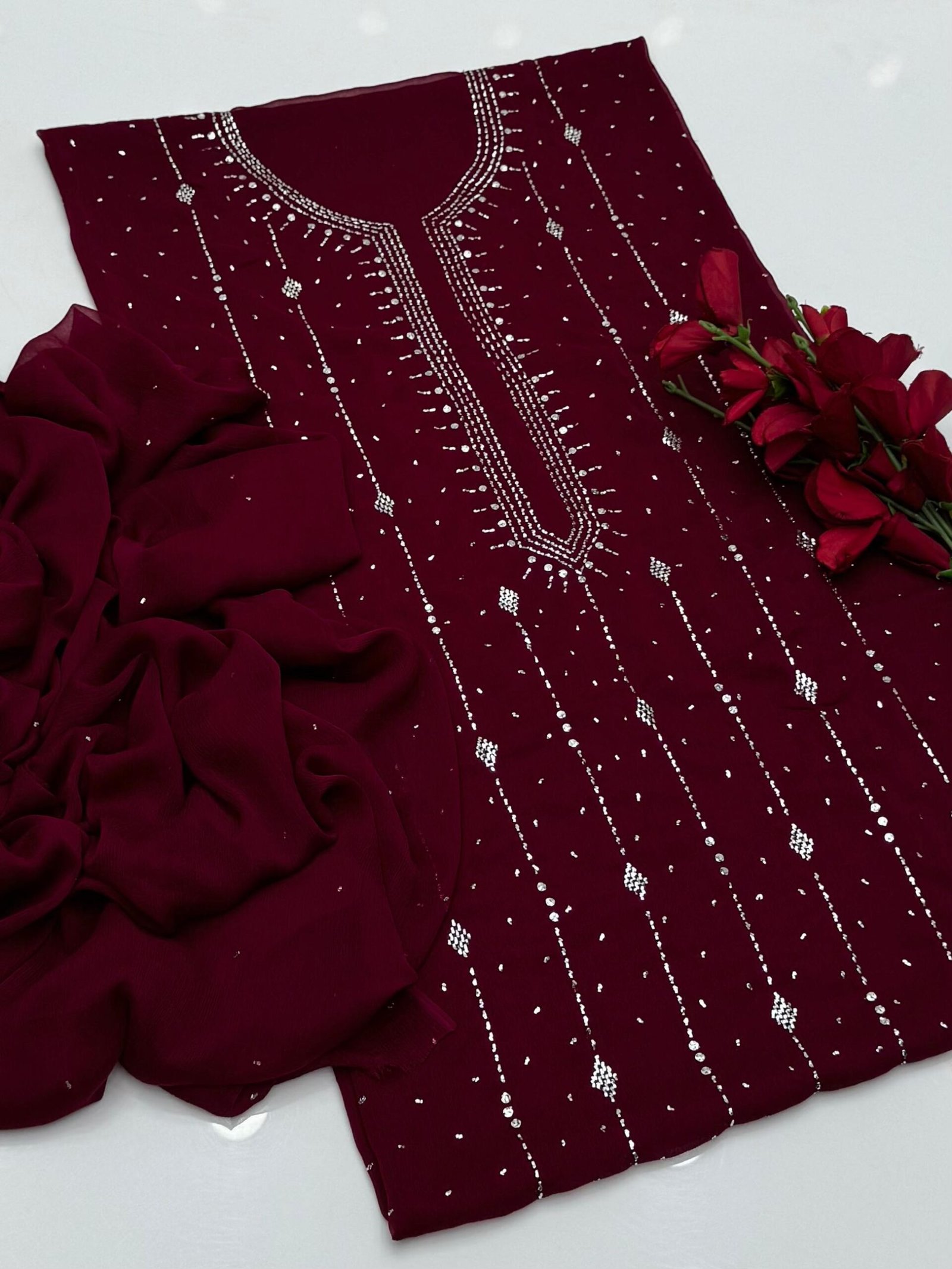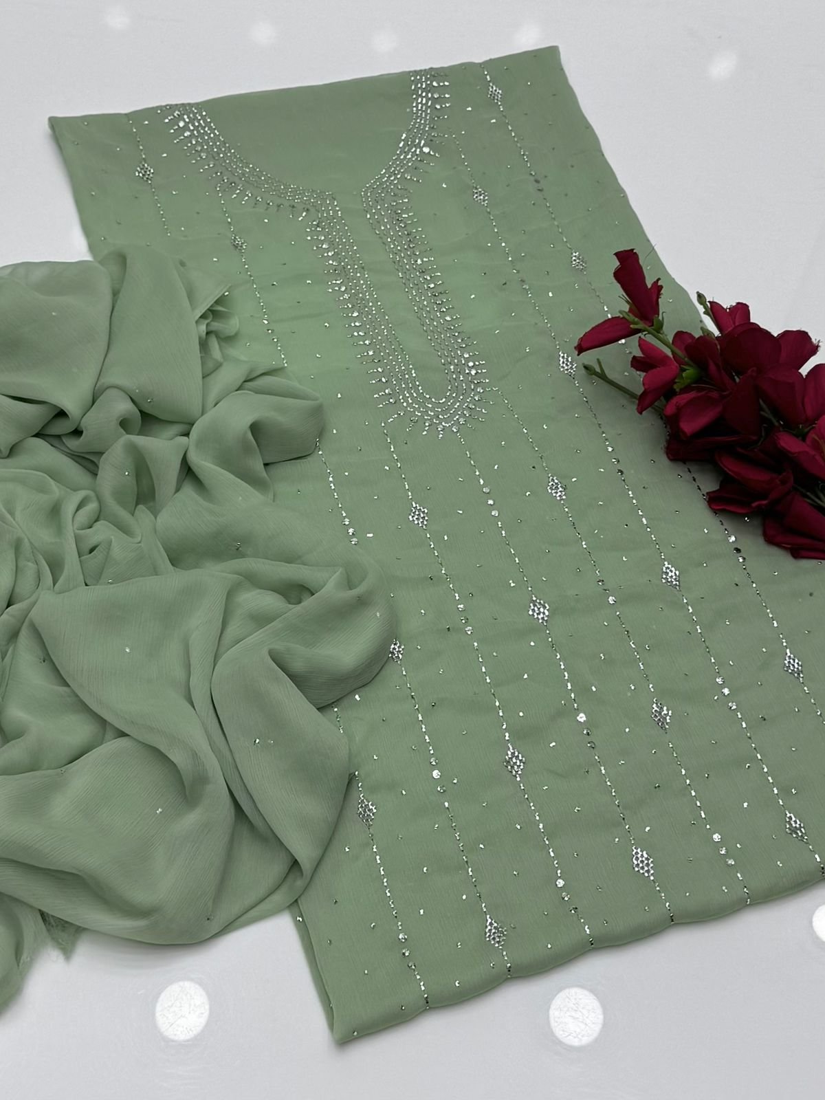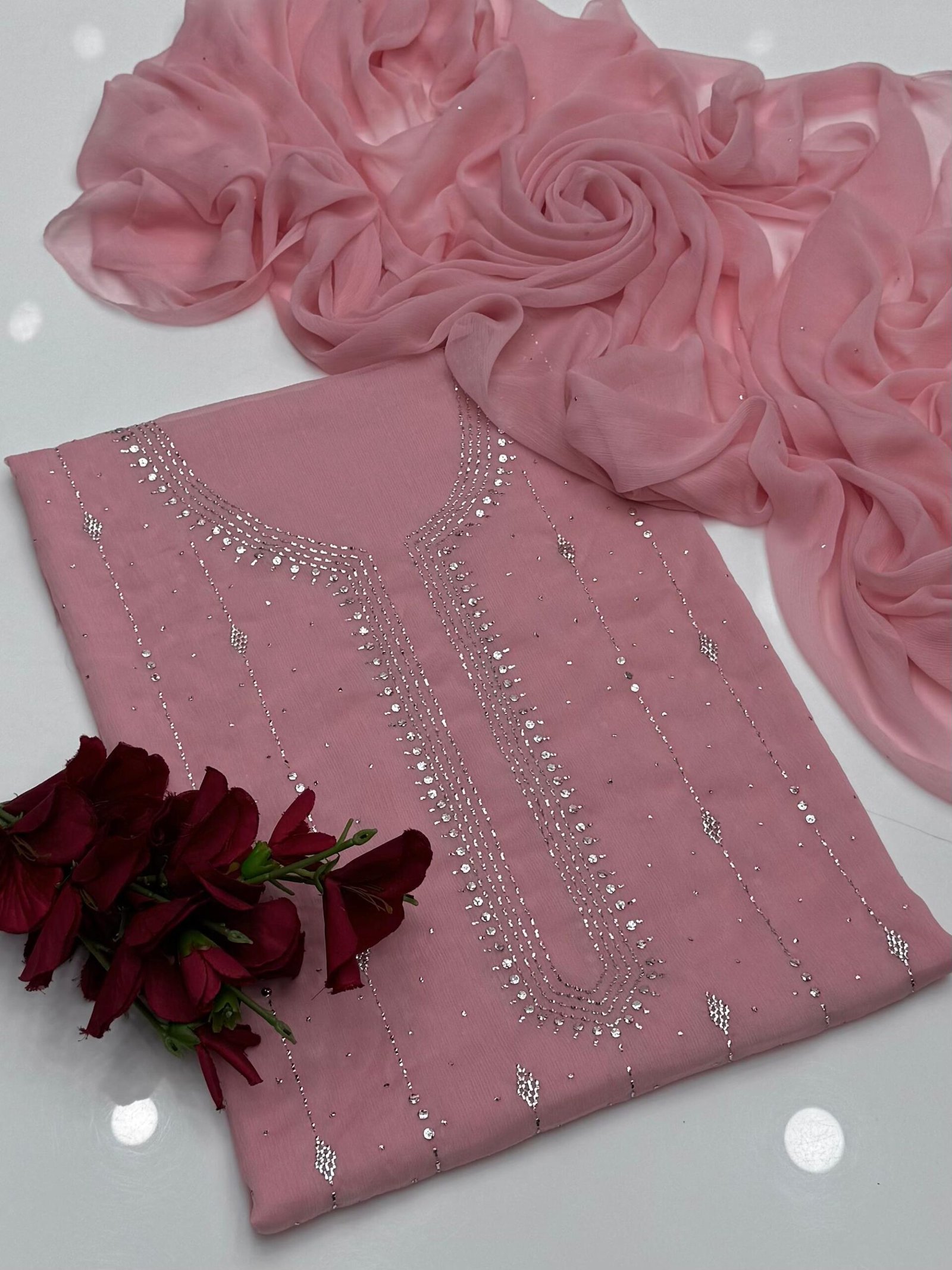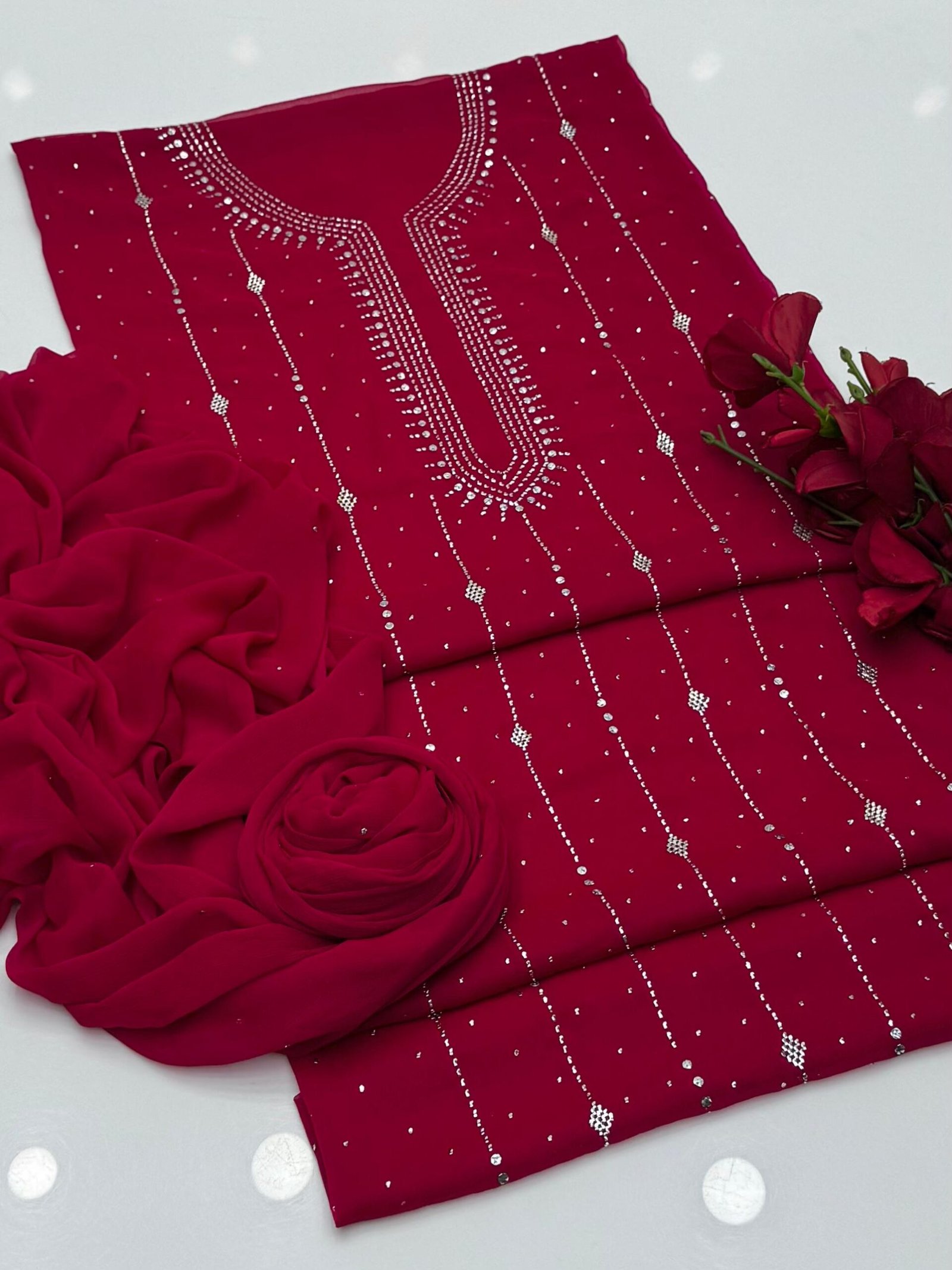 Bamber Chiffon Mukaish Work 2PC Shirt & Dupatta