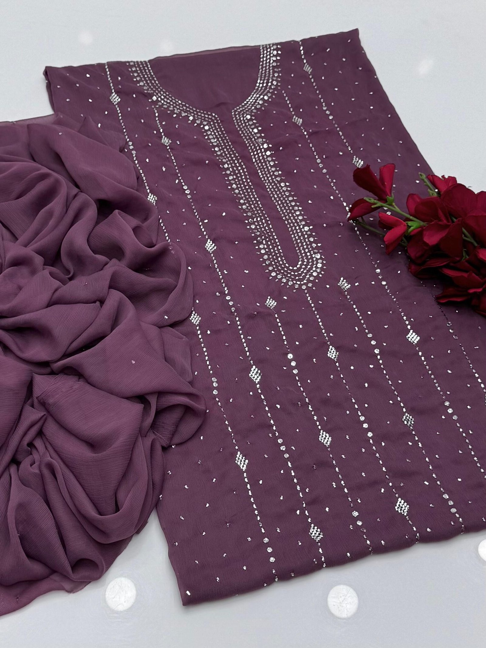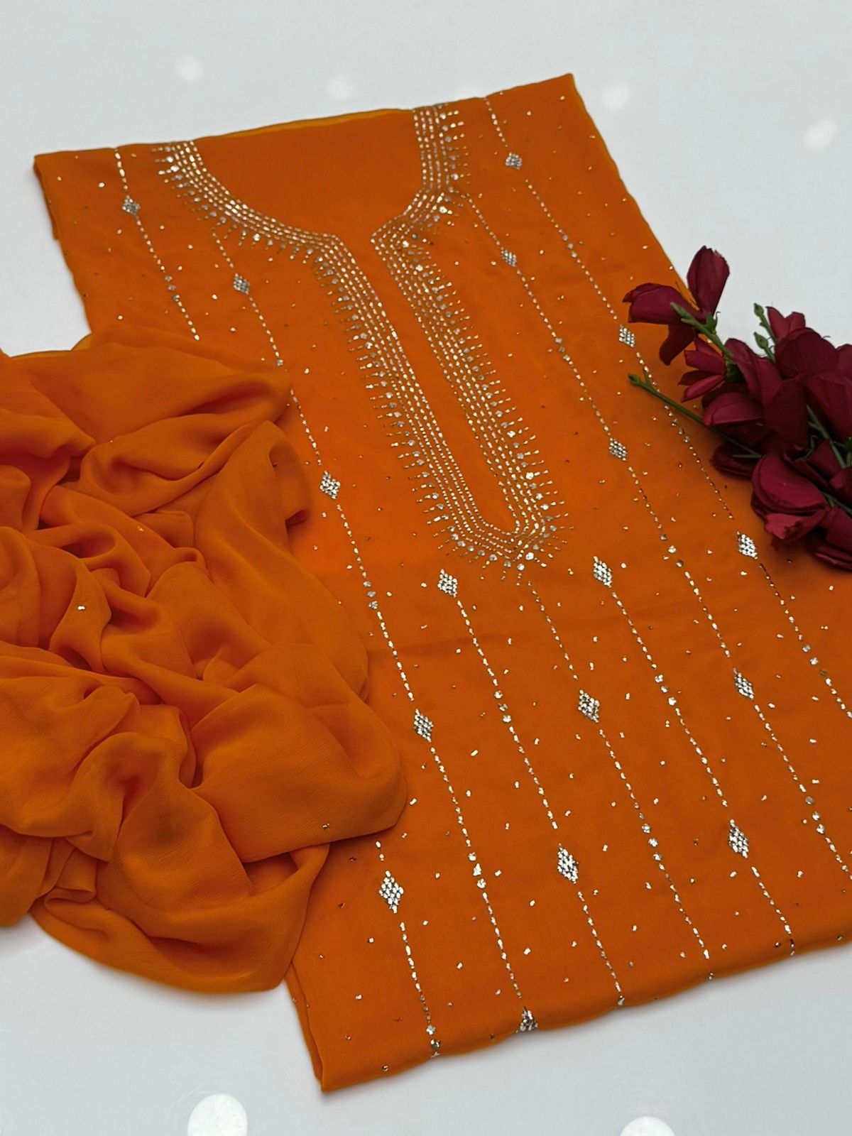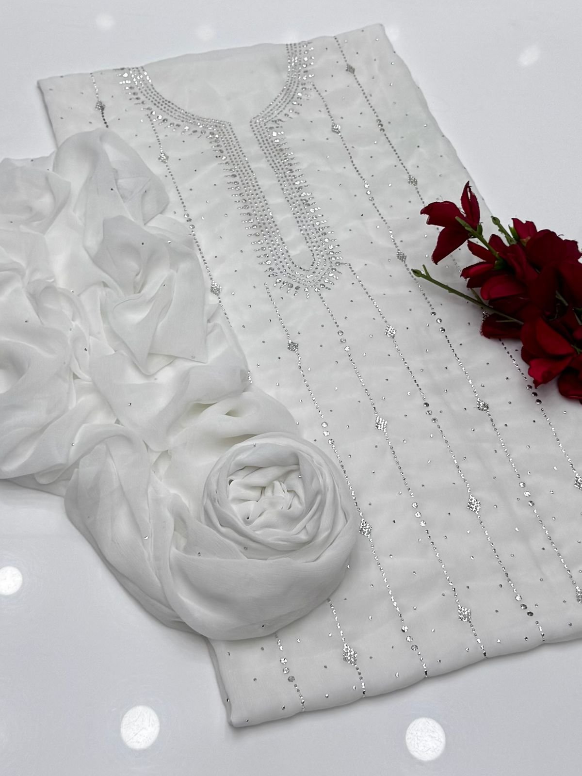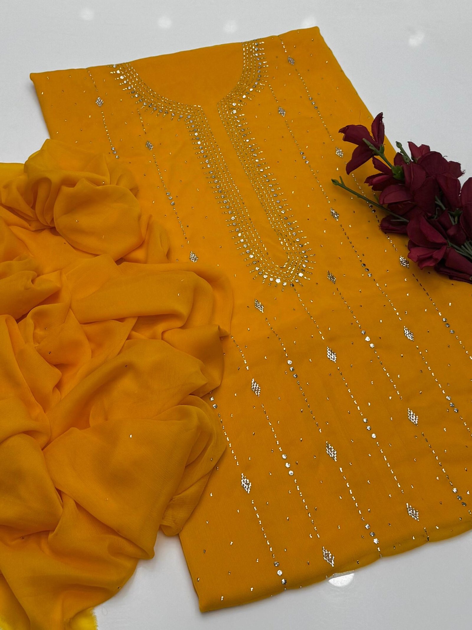 Bamber Chiffon Mukaish Work 2PC Shirt & Dupatta