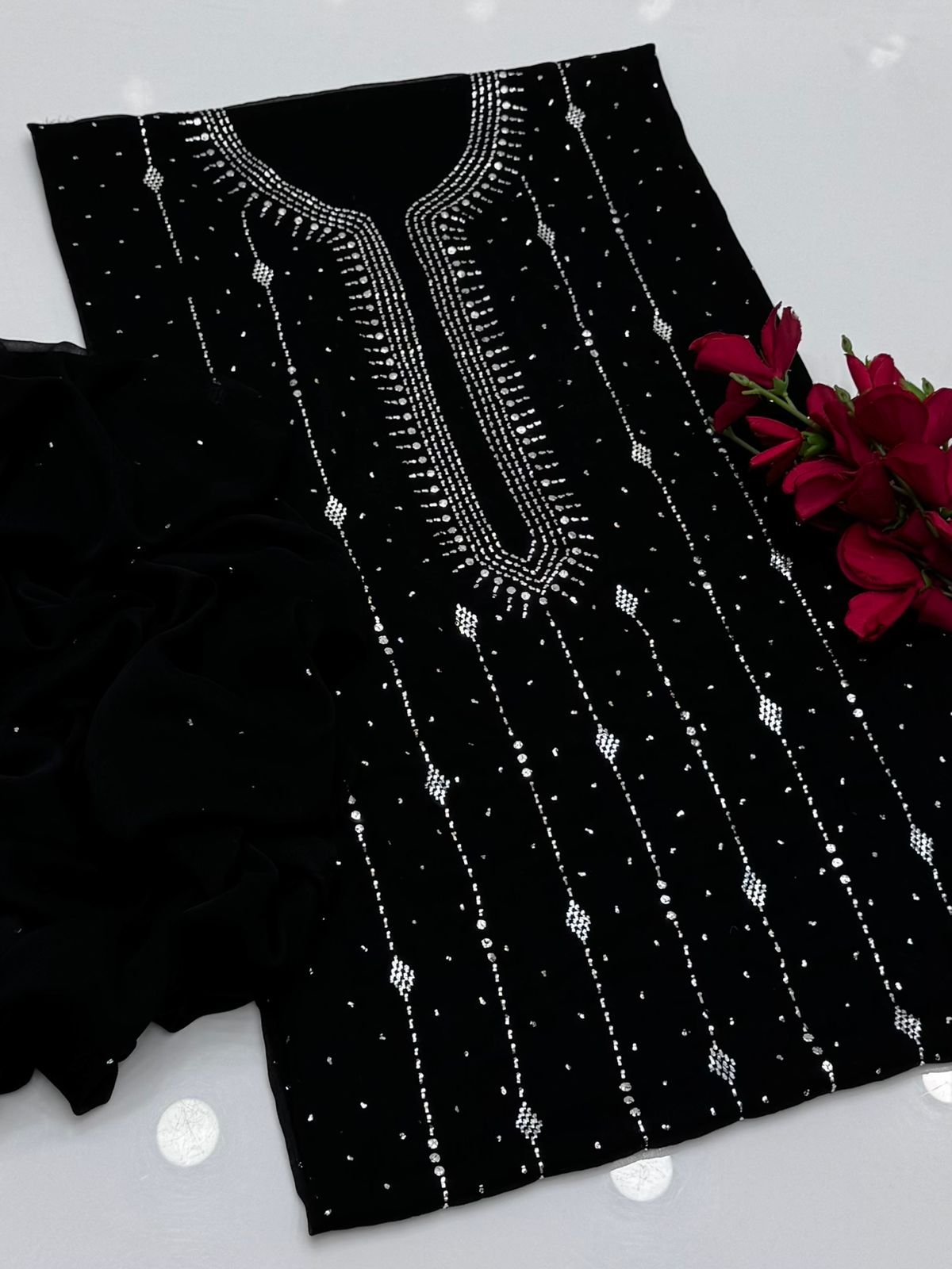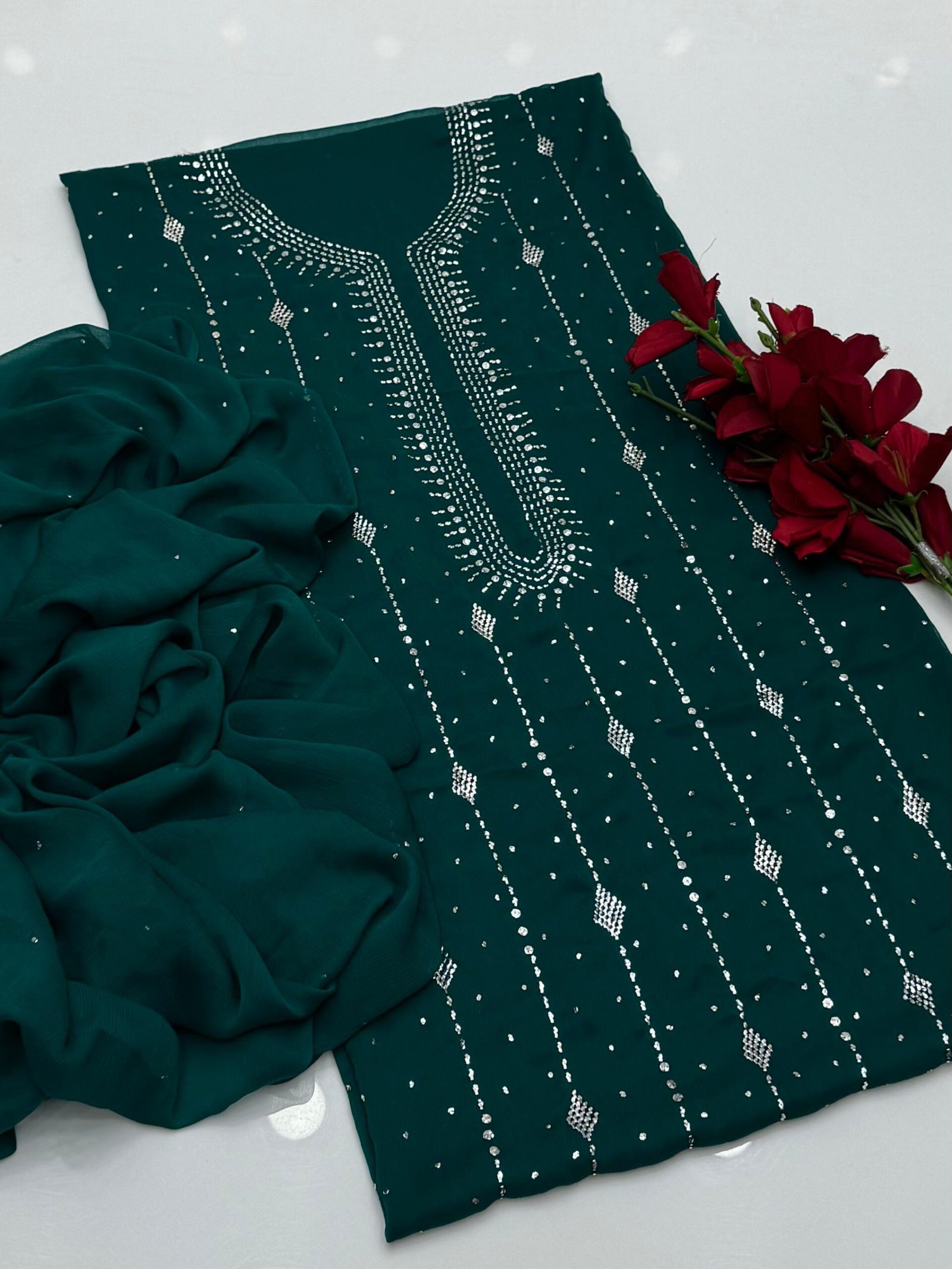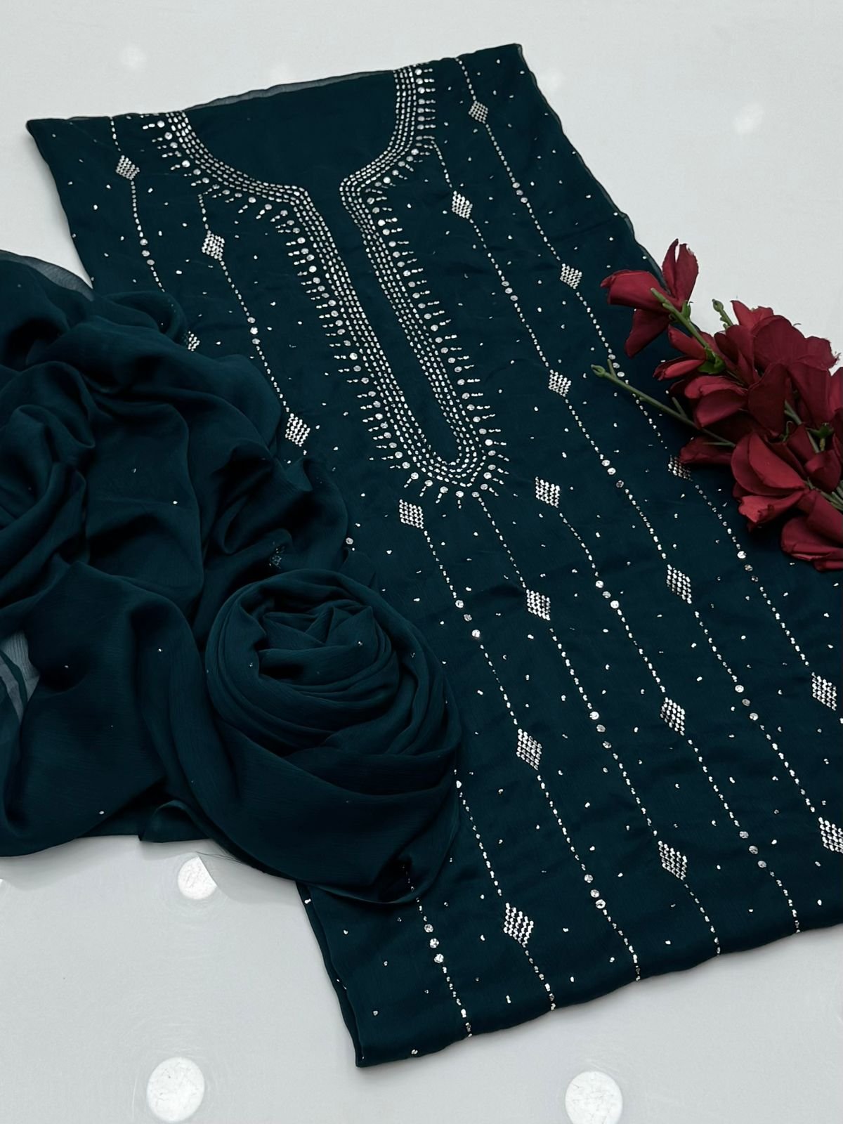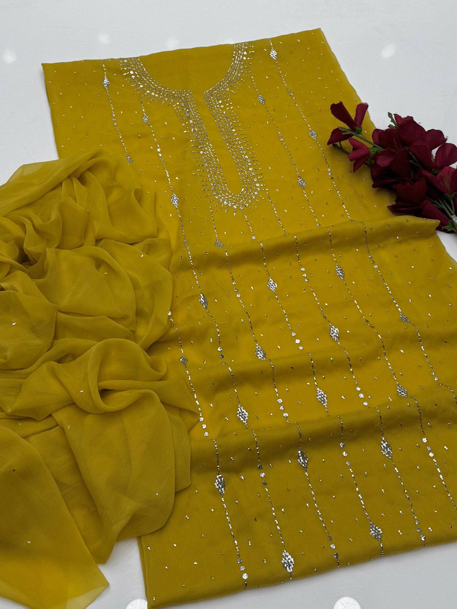 Bamber Chiffon Mukaish Work 2PC Shirt & Dupatta