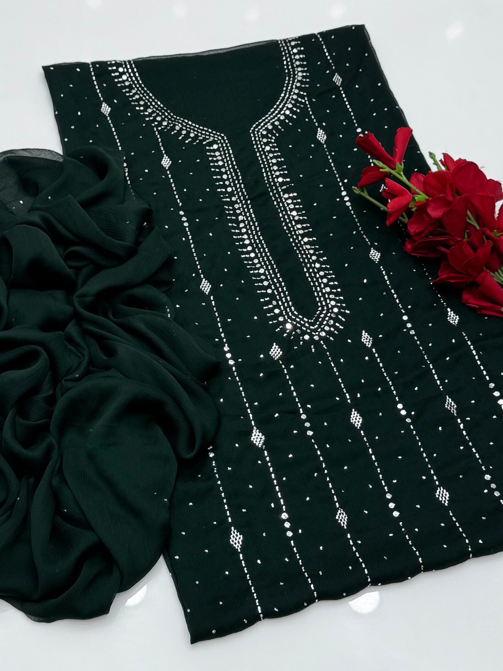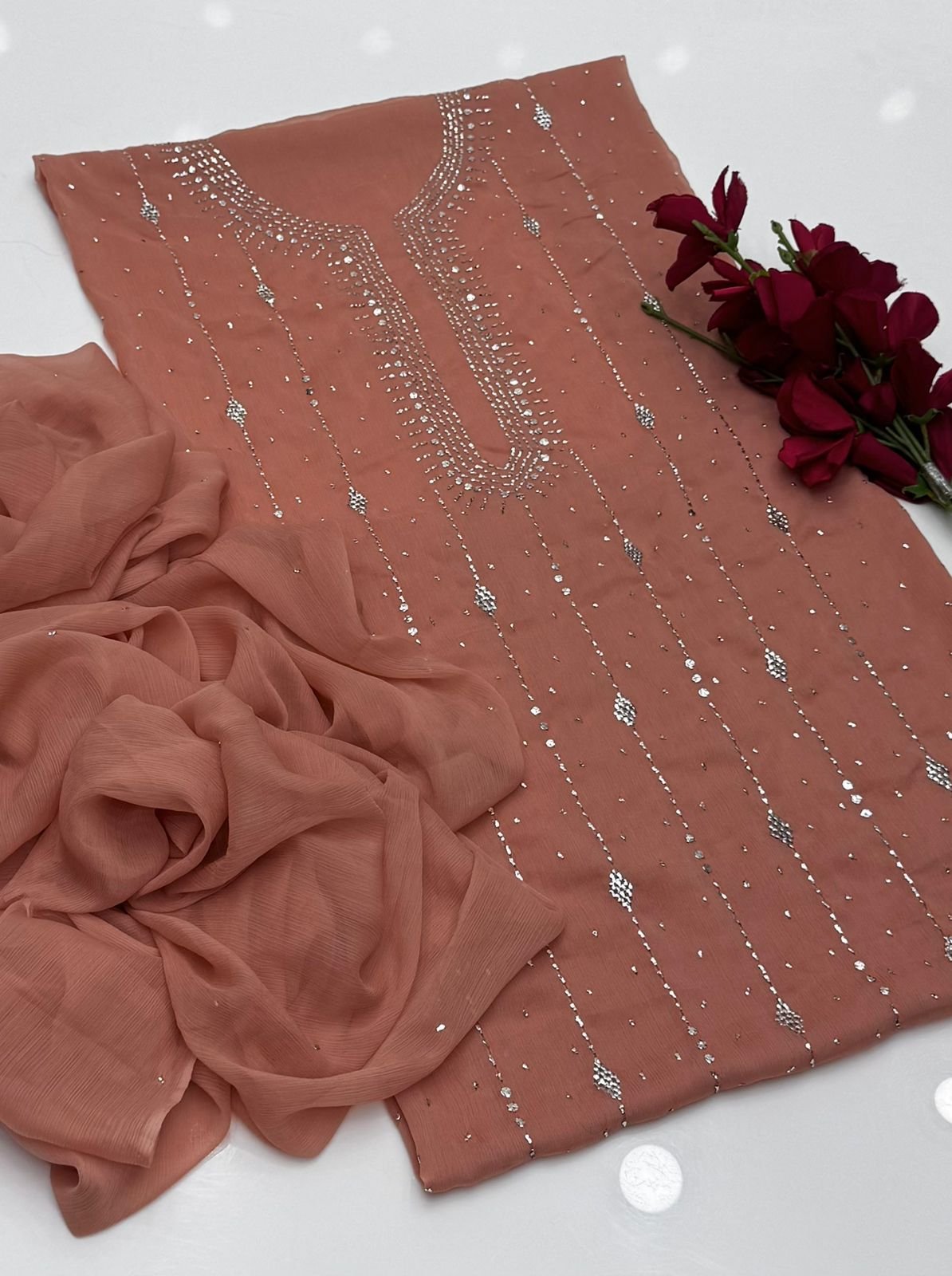 The lightweight chiffon fabric ensures comfort while maintaining a rich, festive appeal — making it ideal for weddings, Eid, parties, and formal dinners. Whether styled with statement jewellery or kept minimal, this outfit gives you a refined and graceful appearance.